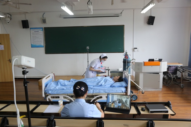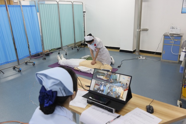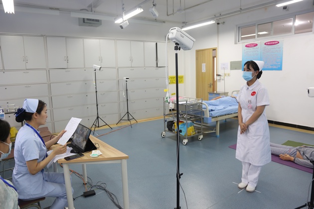 公司作为国家卫健委健康中国研究中心“护理实践操作技能水平评价”试点单位,6月25日,太阳成集团tyc33455cc在青年路护理实训中心开展2022年在校实操考核工作,共131名护理专业员工参加。国家卫健委健康中国研究中心项目管理办公室李安主任进行线上指导,巡考官王雪涛老师来校指导。