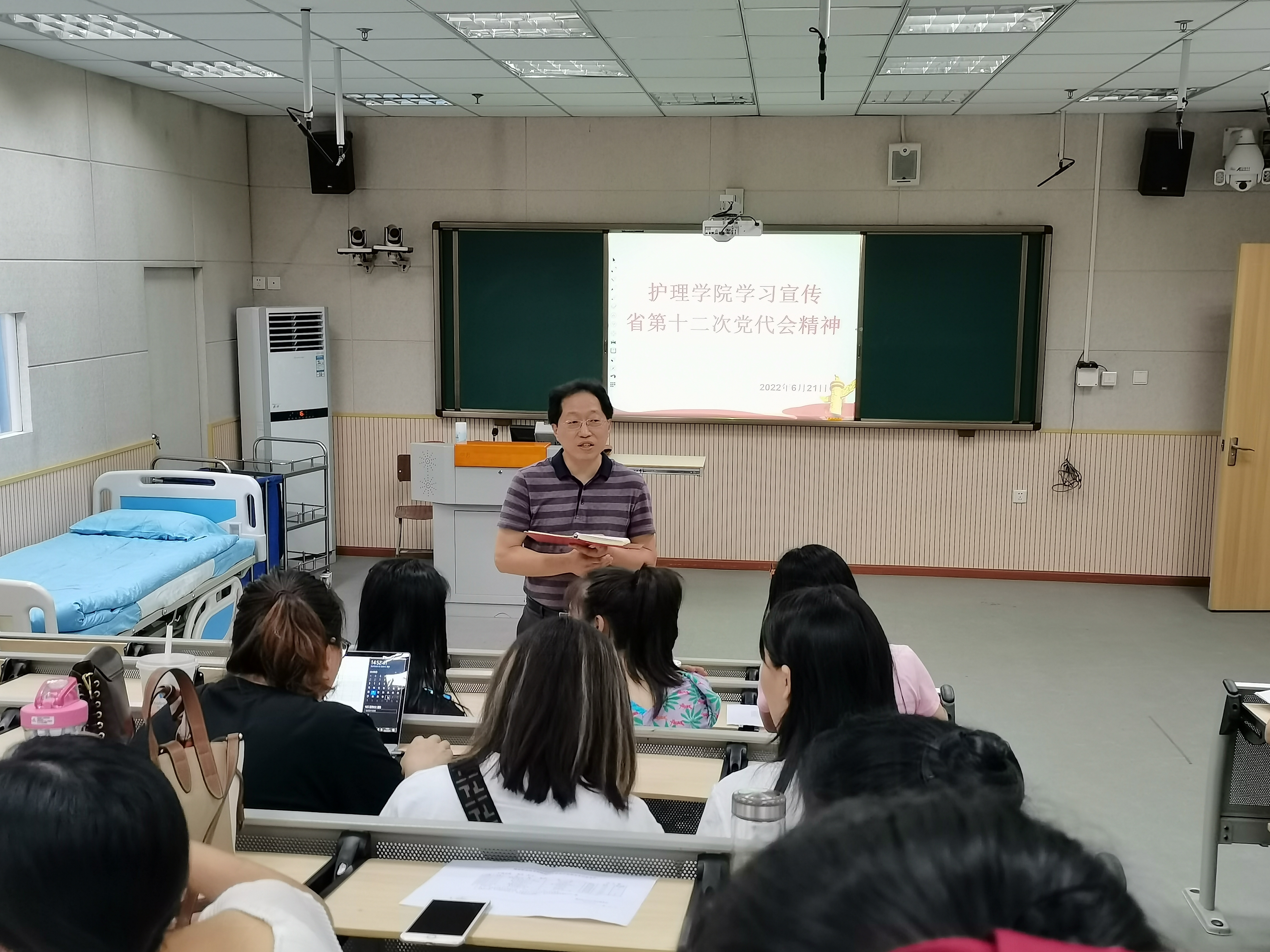 护理公司党总支按照《中共雅安市委关于认真学习宣传贯彻省第十二次党代会精神的通知》(雅委[2022]167号)文件精神和公司要求,6月21日下午,党总支书记杨泽刚同志组织全体党员在青年路校区实训楼504教室认真学习了四川省委第十二次党代会精神。
