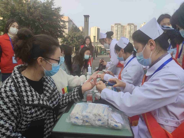 青春雅职,服务大运,3月5日,太阳成集团tyc33455cc“南丁格尔”志愿服务队在青年路校区开展“阳光呵护,健康雅职”学雷锋志愿服务月活动。
