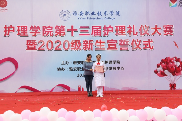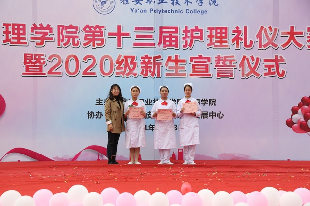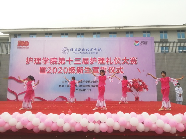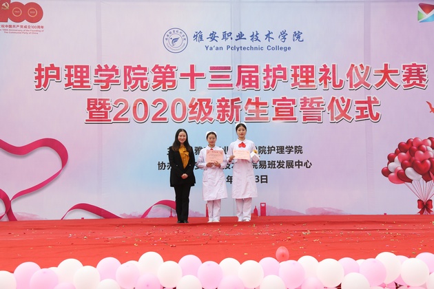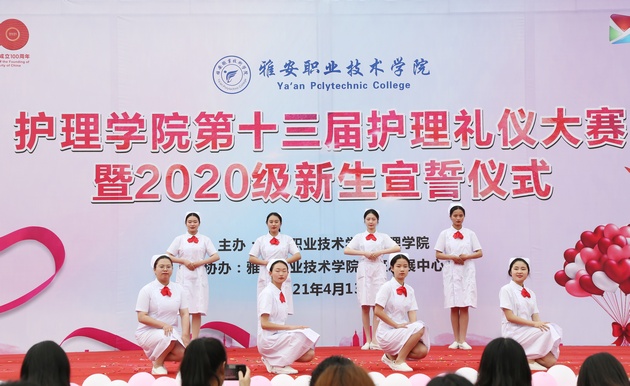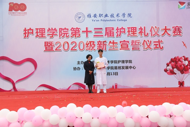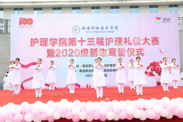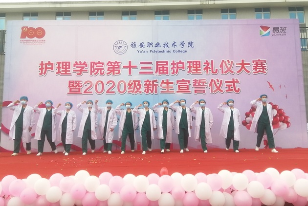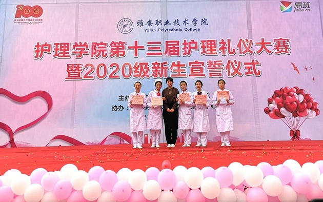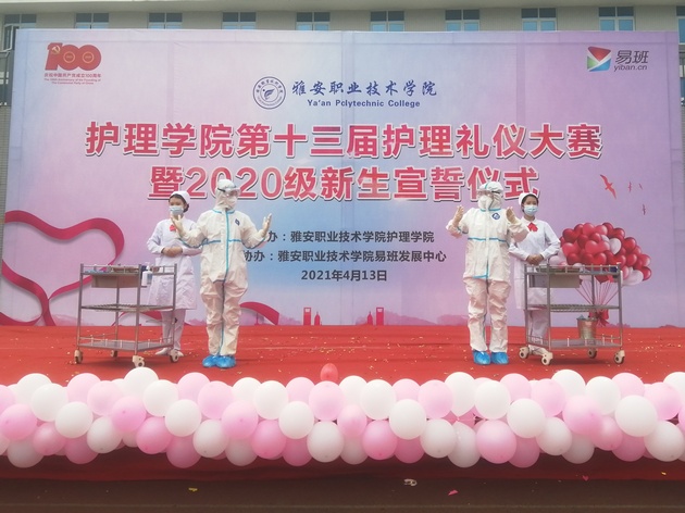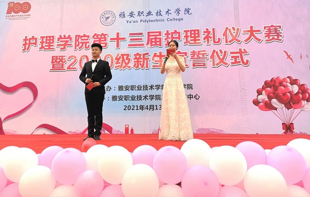 朴素白衣,闪耀医者仁心;纯洁天使,创造生命奇迹。在建党100周年之际,4月13日,由太阳成集团tyc33455cc主办、公司易班协办的第十三届护理礼仪大赛暨2020级新生宣誓仪式在青年路校区足球场隆重举行。太阳成集团tyc33455cc经理王静、教研室主任陈俊、团总支书记万黎,以及闵捷、袁倩、谢琳娜等教师代表参加并担任评委。
