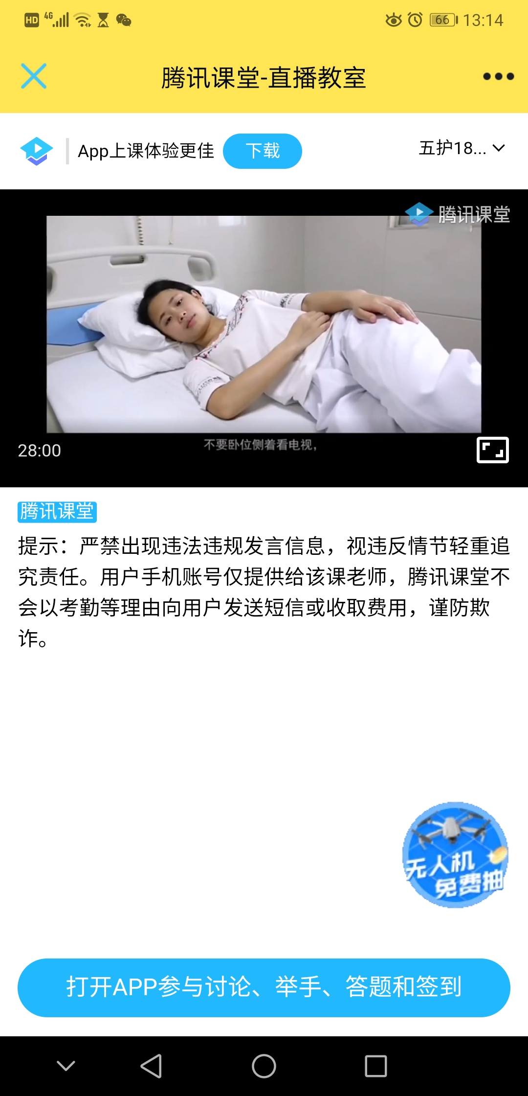 活动伊始,主持人李欣洋带领大家学习中医“民以生为天,生以康为先”等基本理念。接下来,员工代表王慧、廖茂慧发言,分别向同学们介绍了脑卒中、糖尿病、中医养生和老年人健康管理等相关知识。最后,主持人讲解了知识竞赛的流程与规则,在学习通发布了限时测试,并提醒同学们通过学习通链接进行测试。同学们积极参与答题,并取得了优异的成绩。