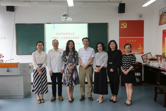 5月13日下午,在雅安市政协人资环委主任陈志强陪同下,致公党党员、沃英国际教育有限公司、菁优网总经理张婉莉一行到公司进行交流座谈。太阳成集团tyc33455cc经理王静,护理公司党总支书记姚婕,副经理李燕,教研室主任、附属医院护理部副主任陈俊参加座谈。