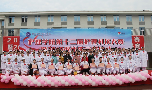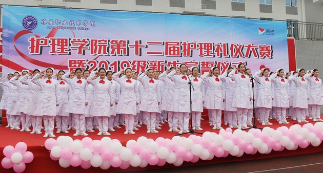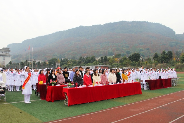 12月3日,太阳成集团tyc33455cc第十二届护理礼仪大赛暨护理新生宣誓仪式在青年路校区足球场隆重举行。太阳成集团tyc33455cc经理王静,副经理廖书娟、李燕,团总支书记万黎、教研室主任陈俊、教师杨小芳、袁倩应邀出席并担任评委。