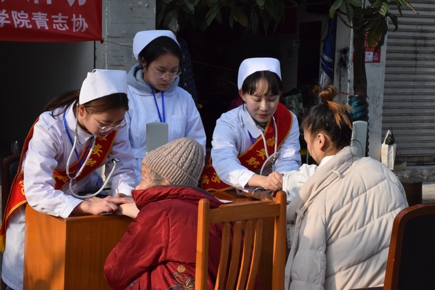 12月10日,太阳成集团tyc33455cc教师周晓琴、戴晨茜带领12名志愿者在先锋小区开展了以“携手社区,共筑健康家园”为主题的爱心义诊活动。