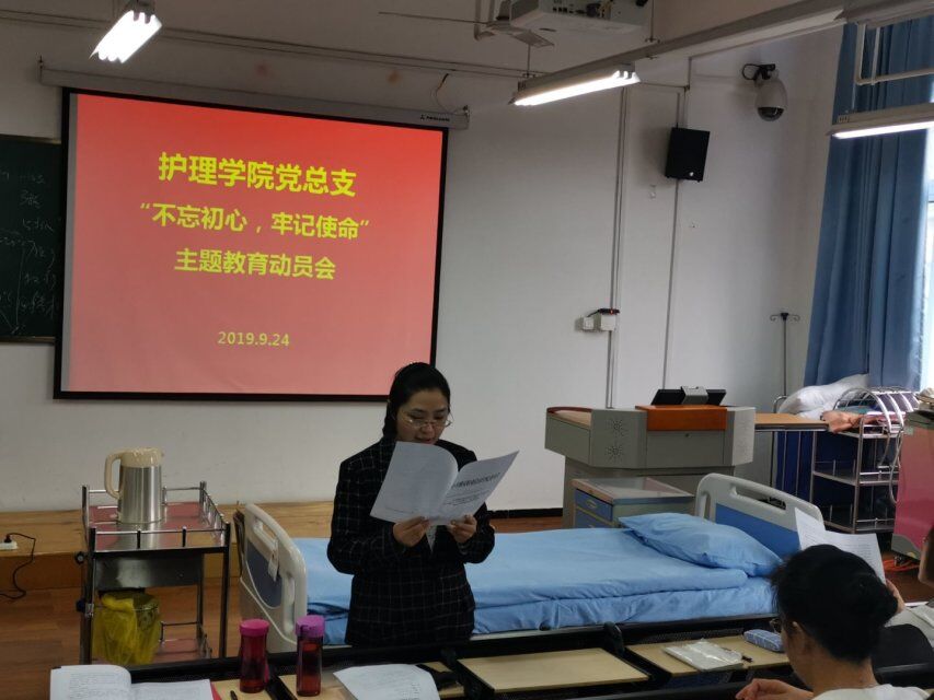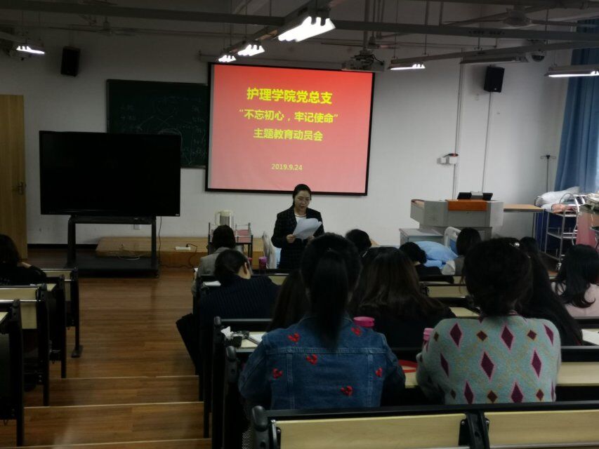 9月24日,太阳成集团tyc33455cc在青年路校区实验实训楼506开展“不忘初心,牢记使命”主题教育动员会,护理公司党政班子、全体教职工参加会议。