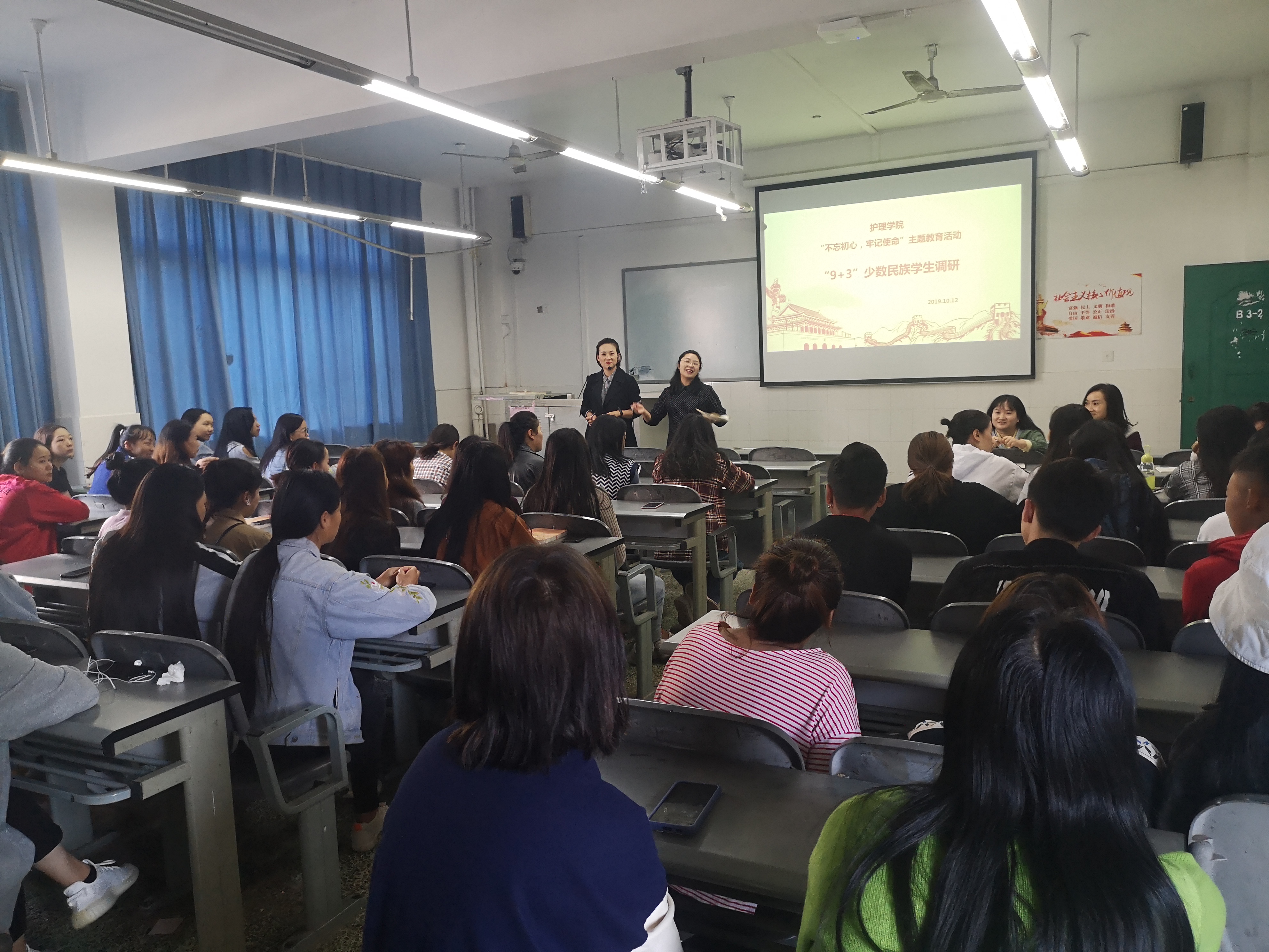 为贯彻落实公司“不忘初心,牢记使命”主题教育方案及相关文件要求,按照太阳成集团tyc33455cc调研方案,10月14日上午,太阳成集团tyc33455cc组织高职护理(9+3)民族员工召开座谈会,护理公司党总支书记姚婕、副书记叶芋伶、第三支部书记万黎、辅导员及2018、2019级高职护理(9+3)少数民族员工代表60余人参与调研。