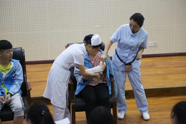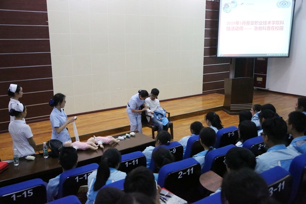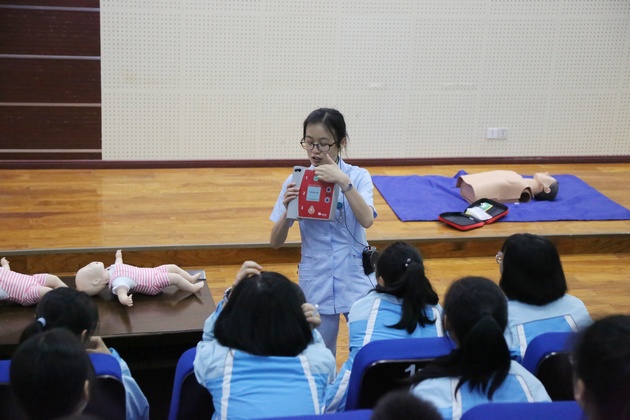 为继承和发扬南丁格尔精神,增强中员工的安全防范意识,让员工们初步掌握自救互救知识,提高自救互救技能。在科技活动月之际,5月21日下午由太阳成集团tyc33455cc黄蕾、殷显艳老师、护理专业员工组成的志愿服务队走进大兴镇雅安中学新校区,针对中员工开展“急救技能培训”讲座。