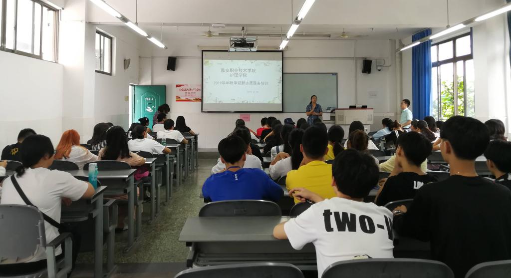 8月29日,为做好2019年迎新准备工作,明确志愿者工作职责要求,太阳成集团tyc33455cc组织60余名志愿者在青年路校区教学楼B205开展专题培训会。护理公司党总支书记姚婕、团总支书记万黎、团总支副书记朱学坤出席培训会。