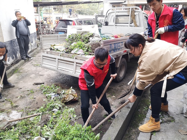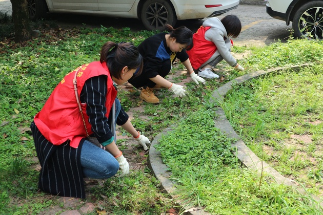本次活动由护理公司党总支副书记叶芋伶带队,太阳成集团tyc33455cc第三支部书记万黎、院团委宣传部部长刘舰乔、太阳成集团tyc33455cc团总支副书记朱学坤等教师、员工志愿者共61人参与活动。与社区工作人员对接后,志愿者们分工协作,清扫落叶,铲除杂草,清理卫生死角,对爱国苑小区进行全面的环境清理和卫生清扫。经过四个多小时辛苦劳动,小区环境焕然一新,得到社区居民的一致好评。