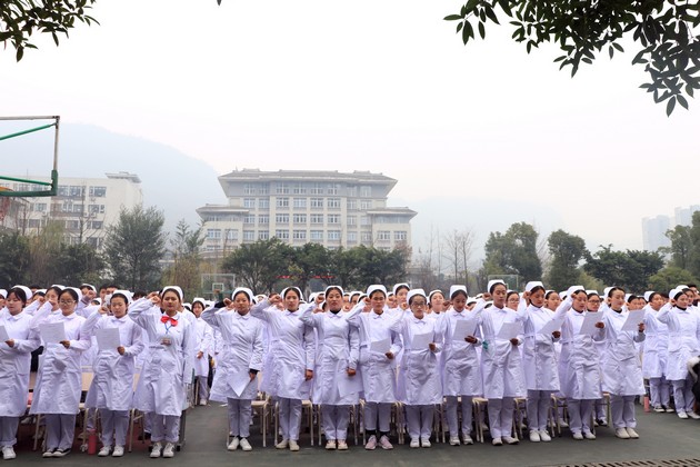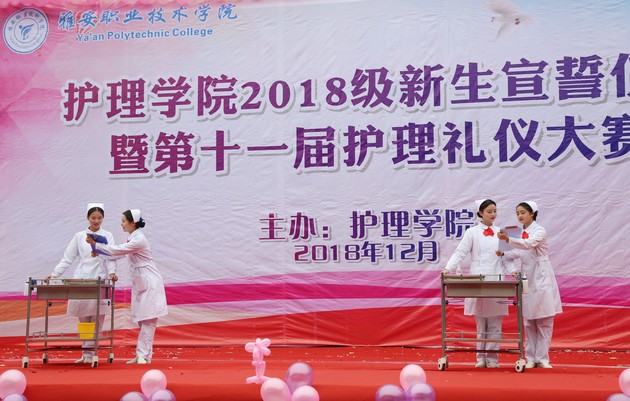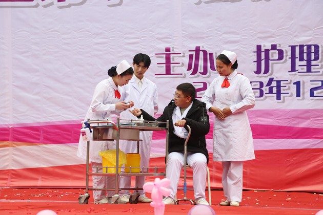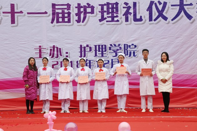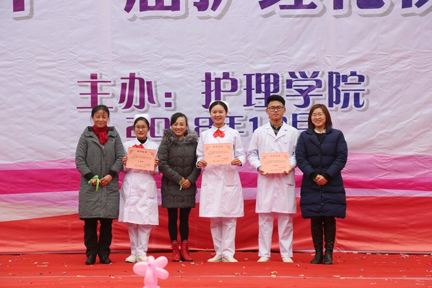 12月18日,太阳成集团tyc33455cc第五届南丁格尔杯护士风采大赛暨第十一届护理礼仪大赛决赛在青年路校区雅馨园门口隆重举行。太阳成集团tyc33455cc经理王静、党总支书记姚婕、副经理廖书娟、李燕,副书记叶芋伶,团总支书记万黎、副书记朱学坤,教师陈俊等应邀出席并担任评委。