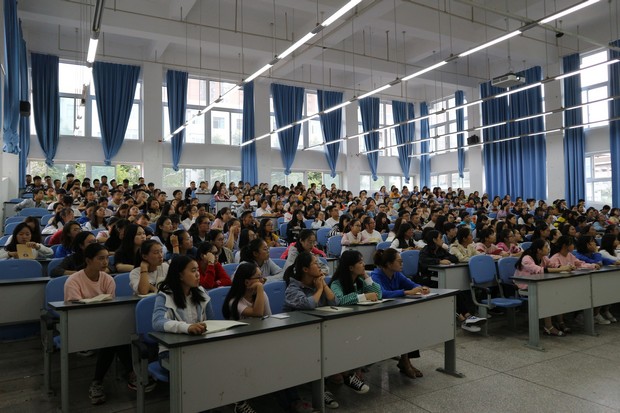 为了使新生更快地适应老员工活,对专业有进一步的了解。9月11日下午,在青年路校区图书综合楼阶梯教室101和102开展了护理系2018级新生入学教育。护理系党支部副书记李敏、副主任廖书娟、教研室主任陈俊、辅导员朱学坤等教师及护理系近600名新生参加了此次大会。