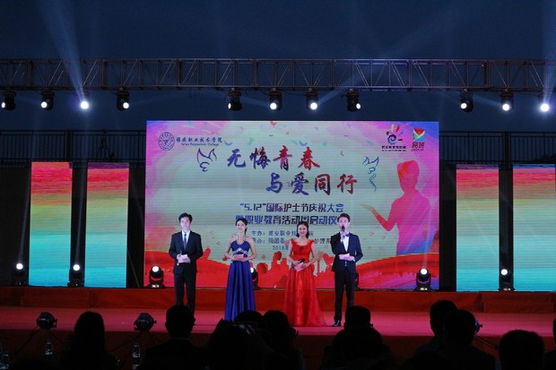 5月10日,由公司主办,护理系、院团委、员工处承办的“无悔青春﹒与爱同行”——“5.12”国际护士节庆祝大会暨职业教育活动周启动仪式在青年路校区田径场隆重举行。公司党委书记李春模、经理石静、党委副书记付洪涛、副经理樊先茂、党委委员宋立智等领导,参加公司产学研创大会的嘉宾,公司各部门系部负责人,护理系教师,护理系全体员工,教育系、旅经系员工代表近2000人观看了本次晚会。