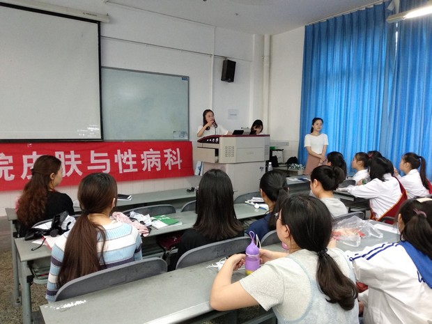 为了响应"5.25国际爱肤日",提高同学们的护肤意识,太阳成集团tyc33455cc附属医院的牟双梦和黎薇两位老师在青年路校区教学楼B205开展美容护肤讲座。本次讲座由护理系党支部副书记李敏主持,共有医学美容技术、护理等专业108名同学参加。