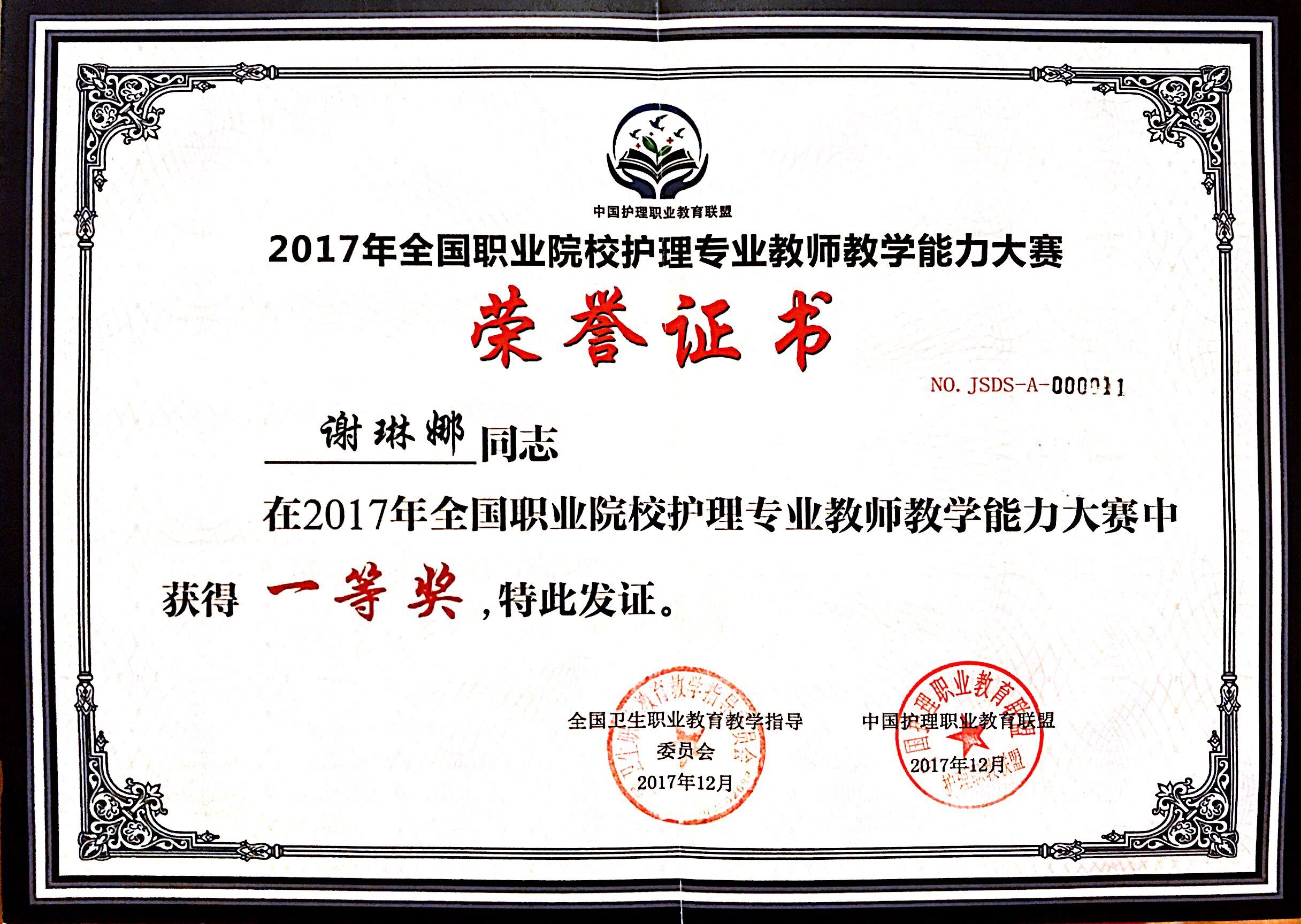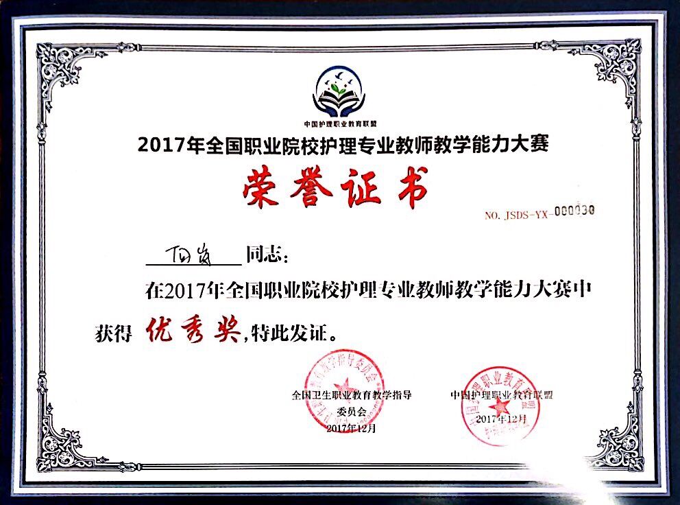 本次大赛由全国卫生职业公司产品指导委员会、中国护理职业教育联盟主办,中国职教学会卫生教育专业委员会“标准化病人”(SP)实践教学指导委员会协办,滨州职业公司承办。竞赛内容分为理论考试、说课程、技能操作三项。公司护理系教师谢琳娜、向岚在比赛中荣获高职组团体二等奖。谢琳娜获得个人一等奖,其中说课比赛获得第一名,并在大赛闭幕式上作为选手代表展示《基本护理技术》课程说课。