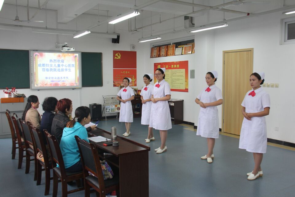 10月20日上午,成都妇女儿童中心医院护理部主任王鑫带领五位护士长来到公司护理系选拔实习生。在护理系教研室主任陈俊的陪同下,面试工作在实训楼606、607顺利展开。