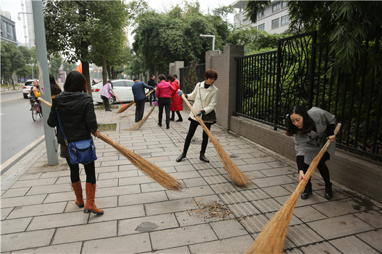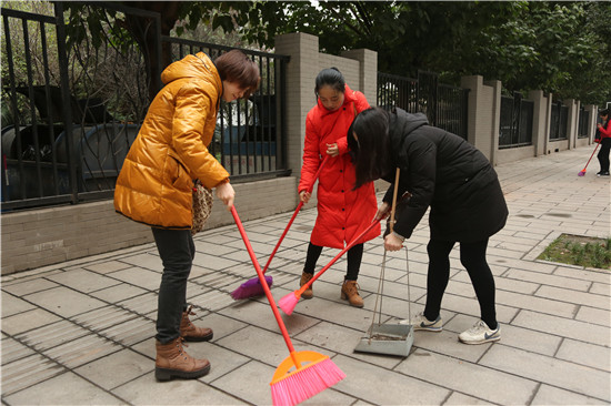 老师们沿着公司周围的街道进行清扫,发扬不怕脏不怕累的精神,在大街上扫地、捡垃圾、清理墙上粘贴的小广告及卫生死角。经过1个多小时的辛勤劳动,校园周边变得既干净又整洁。