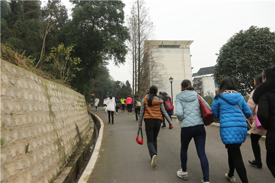 下午3点30分,在系主任王静、副主任廖书娟、党支部副书记李敏的带领下全系教职工准时在起点集合完毕,蓄势待发。在王静主任发出的口令下,比赛正式开始,大家你追我赶,共同向终点迈进。山路虽然崎岖,却阻止不了同志们不怕累、不放弃,顽强拼搏的精神。最终,袁素华老师荣获一等奖,黄丹、谢琳娜老师荣获二等奖,向岚、任冬梅、闵捷老师荣获三等奖。