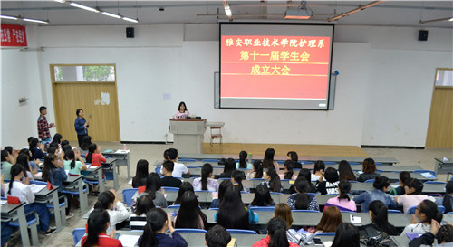 5月25日19:00,由护理系员工会举办的“太阳成集团tyc33455cc护理系第十一届员工会成立大会”在青年路校区阶梯101成功召开。出席此次大会的有护理系党支部副书记李敏、团总支书记万黎及副书记吴玉阳、护理系老师李扬、大一员工会全体成员及大二员工会部份代表。
