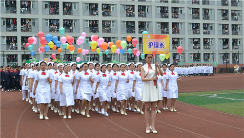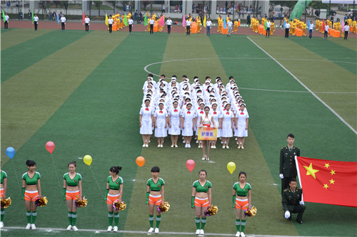 明媚的阳光,伴随着激昂奋进的《义勇军进行曲》,运动会开幕式在升国旗仪式中正式拉开序幕。英姿飒爽的国旗队方阵迈着坚定的步伐,走在检阅队的最前面。紧随其后的是各系方队,踏着铿锵而整齐的步伐,向我们展示着青春的风采。在众多方队中,最为亮眼的便是护理系方队,一身身洁白的护士服,一道道明媚的微笑,步态间尽展自信与优雅。紧接着,全场肃立,国旗在庄严的国歌声中冉冉升起。在石静经理致辞及运动员、裁判员代表宣誓之后,由党委书记张大凯宣布运动会正式开始。最让人激动不已的便是本次开幕式的最后一部分---竞技排舞比赛及彩旗、茶艺等表演,全院6个系,我系的表演独具特色,精彩纷呈,取得优异成绩,绿茵场上光芒四射。