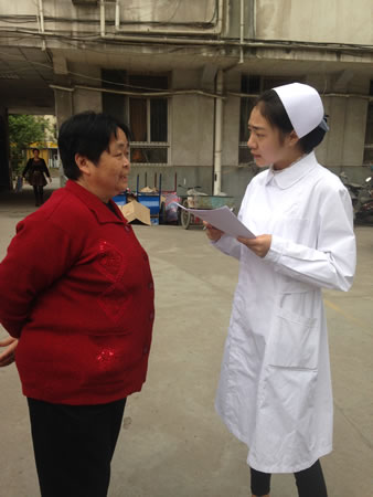 活动中,志愿者们为社区居民进行了脉搏、血糖、血压的测量,并结合自己所学专业的临床知识给老 人们讲解高血压、高血糖等高发疾病的预防保健知识,除此之外还进行了“关于社区老年人生活质量”调查问卷的收集,以便以后能够根据老人们的需要来提高我系志愿者服务活动的质量。