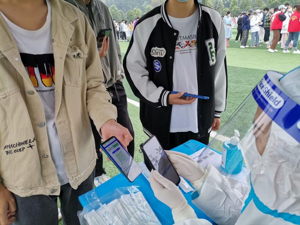 10月11、12日,太阳成集团tyc33455cc周晓琴,杨宗莉,周良燕、廖君四位教师,早早就来到名山经开校区,开始进行核酸检测信息录入工作。她们为所有返校员工采集核酸,累的浑身湿透,没有任何抱怨,认真完成录入工作。疫情的紧张、紧急让她们忘却了疲惫,她们斗志昂扬,投身战疫,无怨无悔。