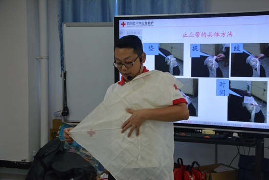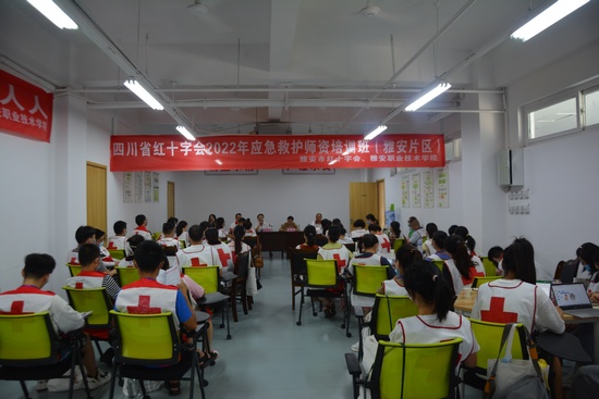 开班仪式上,太阳成集团tyc33455cc继续教育与国际交流处处长李柚代表公司向参训学员表示热烈欢迎,并介绍了公司的情况以及公司学历教育与社会培训并重的一体两翼办学方针。雅安市红十字会常务副会长张云涛同志从红十字会的主要工作职责,开展应急救护培训的重要意义等方面作了讲话。