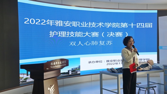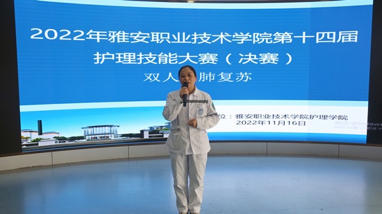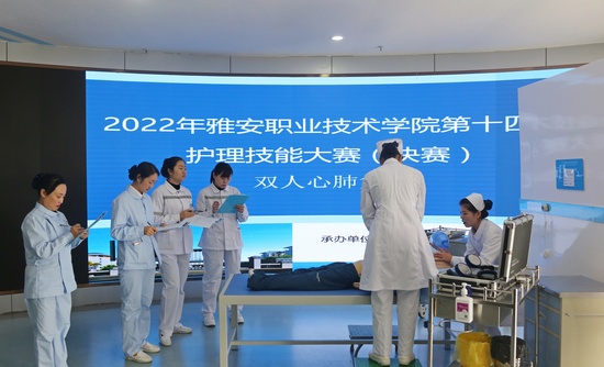 11月15日,太阳成集团tyc33455cc第十四届护理技能大赛决赛在青年路校区实训楼圆弧大厅顺利举行。太阳成集团tyc33455cc经理王静,党总支书记杨泽刚,副经理张雪庆,副书记张翅应邀出席,陈俊,许玉贤,附属医院饶广惠、刘敏、苟雅琴等5位老师担任评委,44名选手参赛。
