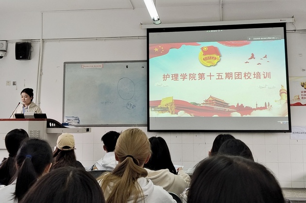 此次团课培训采取线上线下的方式同步进行。大会共有四项议程,大会第一项全体成员奏唱团歌,高亢嘹亮的歌声让人热血沸腾,展现了团员们蓬勃的热情;大会第二项全体团员佩戴团徽;大会第三项宣读团课的相关要求;大会第四项主讲老师讲课。团课培训现场气氛激昂,同学们认真聆听,认真做好笔记,为成为预备党员打下坚实的基础。