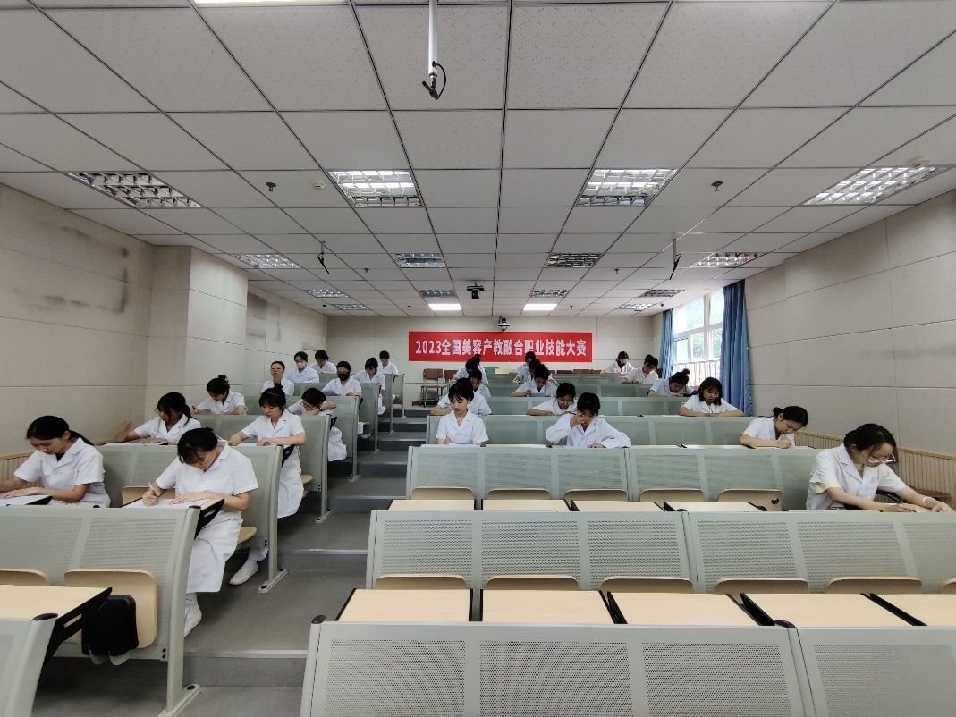 6月9日-10日,太阳成集团tyc33455cc参加了由中国美发美容协会指导,中国美发美容协会产教融合专业委员会主办,沧州医学高等专科公司、惠州雅姬乐化妆品有限公司、广东省卫生职业教育协会医学美容技术专业群教学工作委员会承办的“全国美容产教融合职业技能大赛”。