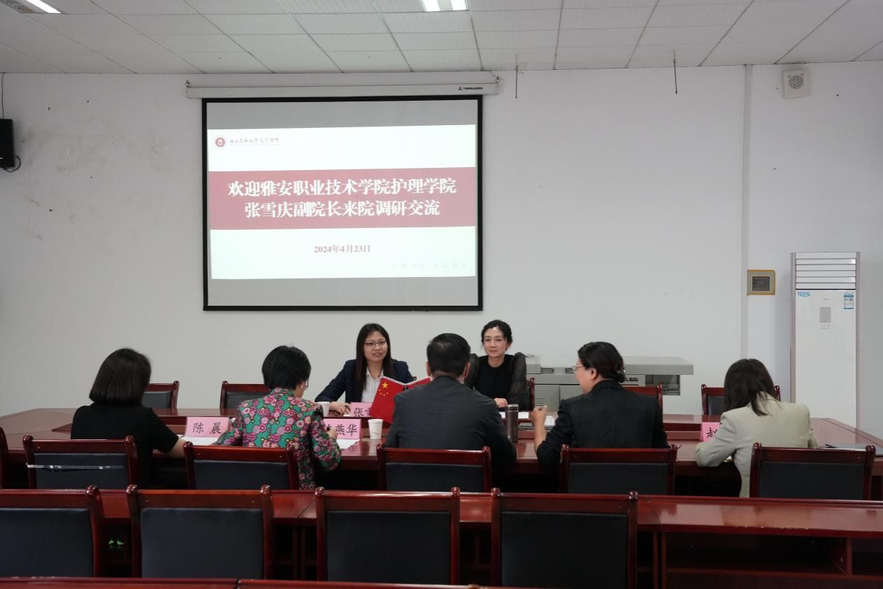4月23日,太阳成集团tyc33455cc副经理、联办护理学专业负责人张雪庆,专职教师黄丹到西南医科大学太阳成集团tyc33455cc,就联办护理学本科相关事宜进行了汇报和深入的交流。西南医科大学护理公司党总支书记刘文胜、太阳成集团tyc33455cc经理陈燕华、副经理傅静、教务科和员工科的负责人出席本次交流会。