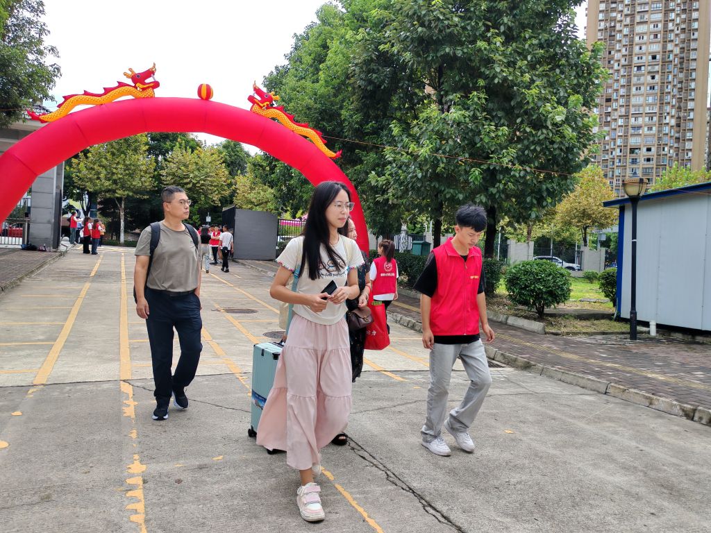 迎新过程中,志愿者们积极主动,用热情真诚的态度对待每一位新同学。“同学,让我来帮你搬行李吧,你只需要跟着我,我带你去你的宿舍。”志愿者的话语如同一缕和煦的春风,瞬间消除了新生的不安与迷茫。在报到处,老师们用最温暖的笑容迎接每一位新成员并耐心地解答着新生们的各种疑问。老师们的话语如同春风,温柔而细致,让新生们在陌生的环境中感受到了家的温暖,他们不仅是新生入学的引路人,更是校园生活的精神守望者,每一位新生铺就了通往梦想的道路。