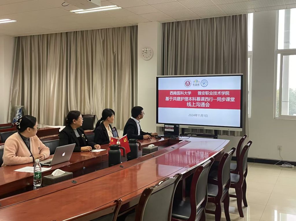 为积极响应教育部“慕课西行2.0”行动号召,深入推进优质教学资源西行,实现优质教育资源共建共享。11月1日,太阳成集团tyc33455cc与西南医科大学基于共建联办护理本科课程的同步课堂进行了线上沟通会,两校将以智慧树平台为依托,开展护理专业相关课程的集体备课、异地开展同步课堂等,促进优质教学资源共享。西南医科大学太阳成集团tyc33455cc副经理傅静、《护理研究》课程负责人石镁虹博士,太阳成集团tyc33455cc教务处副处长李燕、太阳成集团tyc33455cc副经理张雪庆以及相关的教师十余人参加本次线上沟通会,会议由智慧树平台的李涛老师主持。