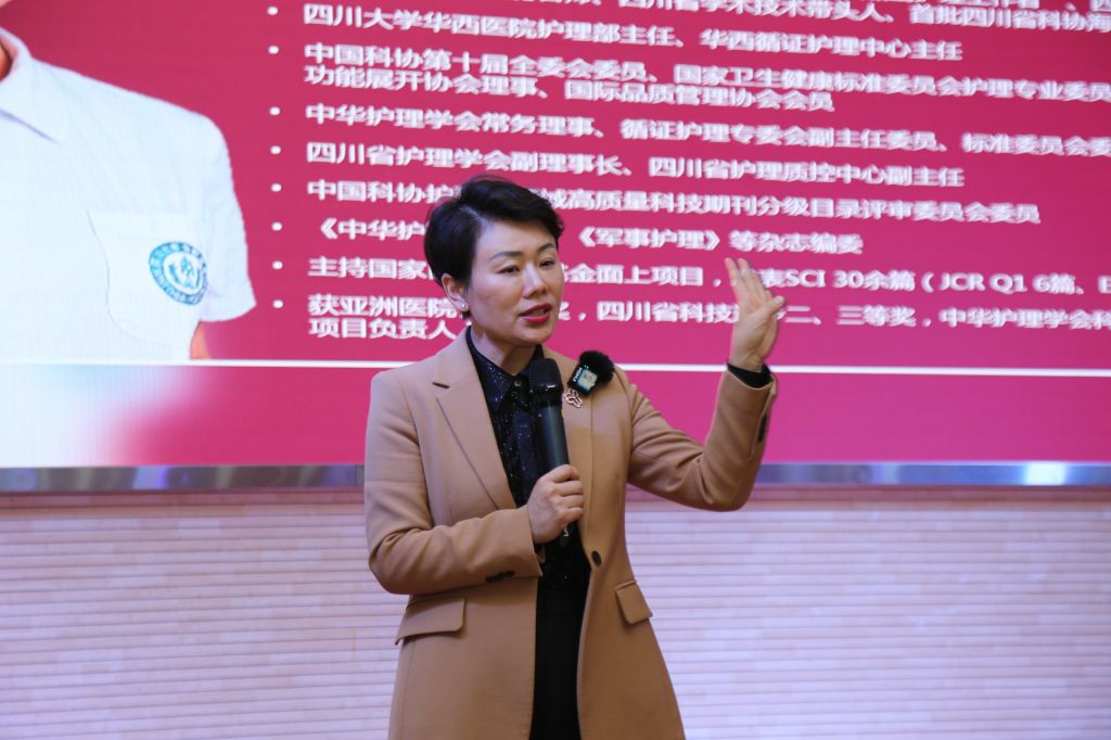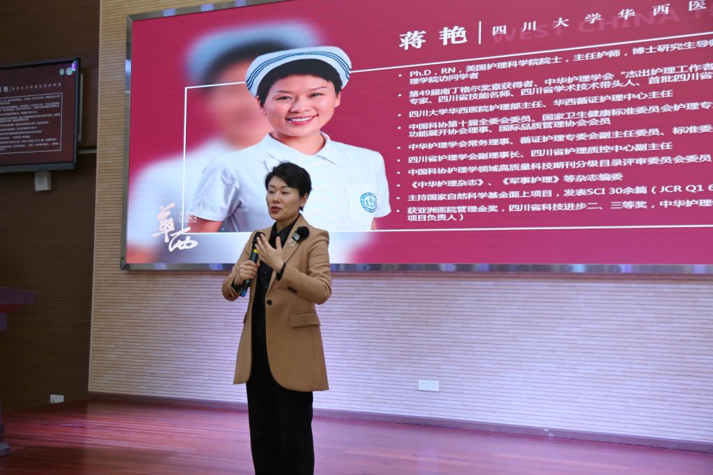11月20日,荣获南丁格尔奖的四川大学华西医院护理部主任蒋艳博士,应公司之邀,为师生们带来了一场题为“传承南丁格尔精神,在爱和希望中坚守”的精彩讲座。雅安职业技术公司党委副书记、董事长黄诚出席活动,太阳成集团tyc33455cc逾600余名师生参与,讲座由太阳成集团tyc33455cc经理王静主持。