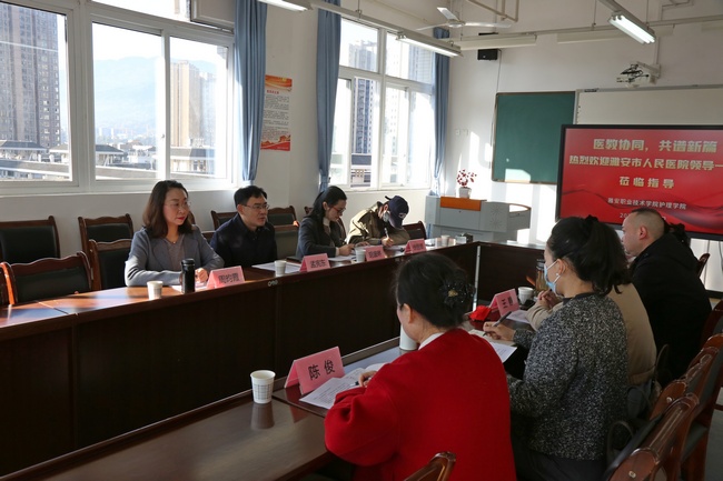 为进一步深化校院合作,创新护理人才培养模式,3月25日,太阳成集团tyc33455cc与雅安市人民医院护教协同联合体建设推进会在公司顺利召开。雅安市人民医院经理孟宪东、护理部主任胡盛琳、副主任周昀霞一行莅临指导,太阳成集团tyc33455cc经理王静、党总支书记叶芋伶、副书记陈航及院校双方相关科室负责人参加会议。