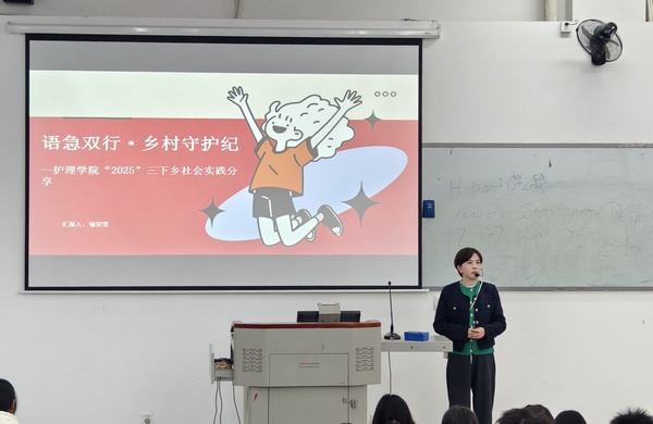 分享会伊始,喻荣雪老师通过图文并茂的PPT,生动展示了公司团队深入乡村的实践历程。她以“语急双行·乡村守护纪”为主题,详细讲述了团队在医疗义诊、健康宣教、普通话推广等方面的点滴故事与深刻感悟。一张张真实的照片,一个个鲜活的案例,让同学们仿佛身临其境,深刻感受到乡村的淳朴风貌与团队成员的奉献精神。