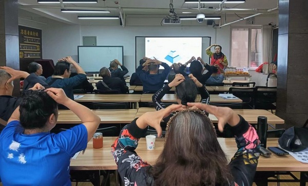 讲座聚焦老年人日常健康需求,内容设计紧贴实际。彭玉娇首先登台,现场演示了“噎食的紧急处理方法”,系统讲解了海姆立克急救法的操作步骤与关键要点,有效提升了在场老年朋友应对突发状况的自救互救能力。随后,任冬梅带领大家学习了一套“手指操”。通过伸展、旋转、握拳等简单动作,帮助老人们活动手部、刺激大脑,现场互动踊跃,气氛活跃。最后,杨苓梅介绍了中医穴位保健知识,重点讲解了合谷、足三里等常用穴位的定位、功效与按摩技巧,老人们纷纷跟随练习,学习缓解常见不适的实用方法。