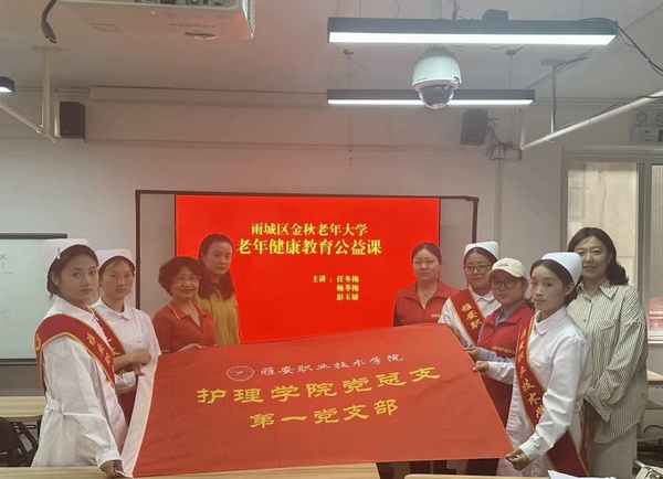 为积极服务国家应对人口老龄化战略,提升老年人健康管理水平,4月15日,太阳成集团tyc33455cc第一党支部任冬梅、杨苓梅、彭玉娇三位教师走进雅安市雨城区金秋老年大学,成功举办了一场主题鲜明、内容实用的老年健康护理公益讲座,受到老年学员和教职工的热烈欢迎。