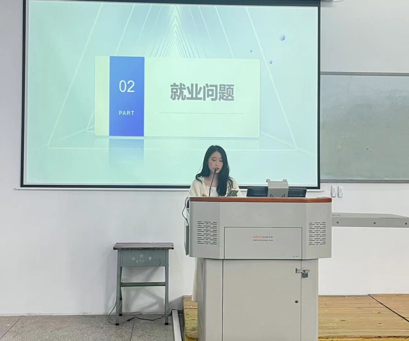交流会上,李媛媛向大家展示了个人参赛经历和成果,分享了自己的竞赛经验,鼓励同学们积极参加创新创业活动,不断提高创新创业能力。徐江雪从多方面阐述就业问题,让大家认识到学历的日益凸显的重要性,倡导同学们积极通过自考,专升本等方式提高学历,增加就业竞争力。